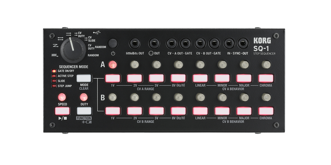The SQ-1 is a compact step sequencer with 2 x 8 steps. It's wealth of connection jacks allows it to be connected to the MS-20 and a variety of other synthesizers. Vintage analog synths or the latest compact synths can be controlled from this single unit. You can also switch between a variety of synthesizer modes and use the step buttons to create performances overflowing with spontaneity, just as when using a volca unit. This device allows you to connect any type of device and control it freely.