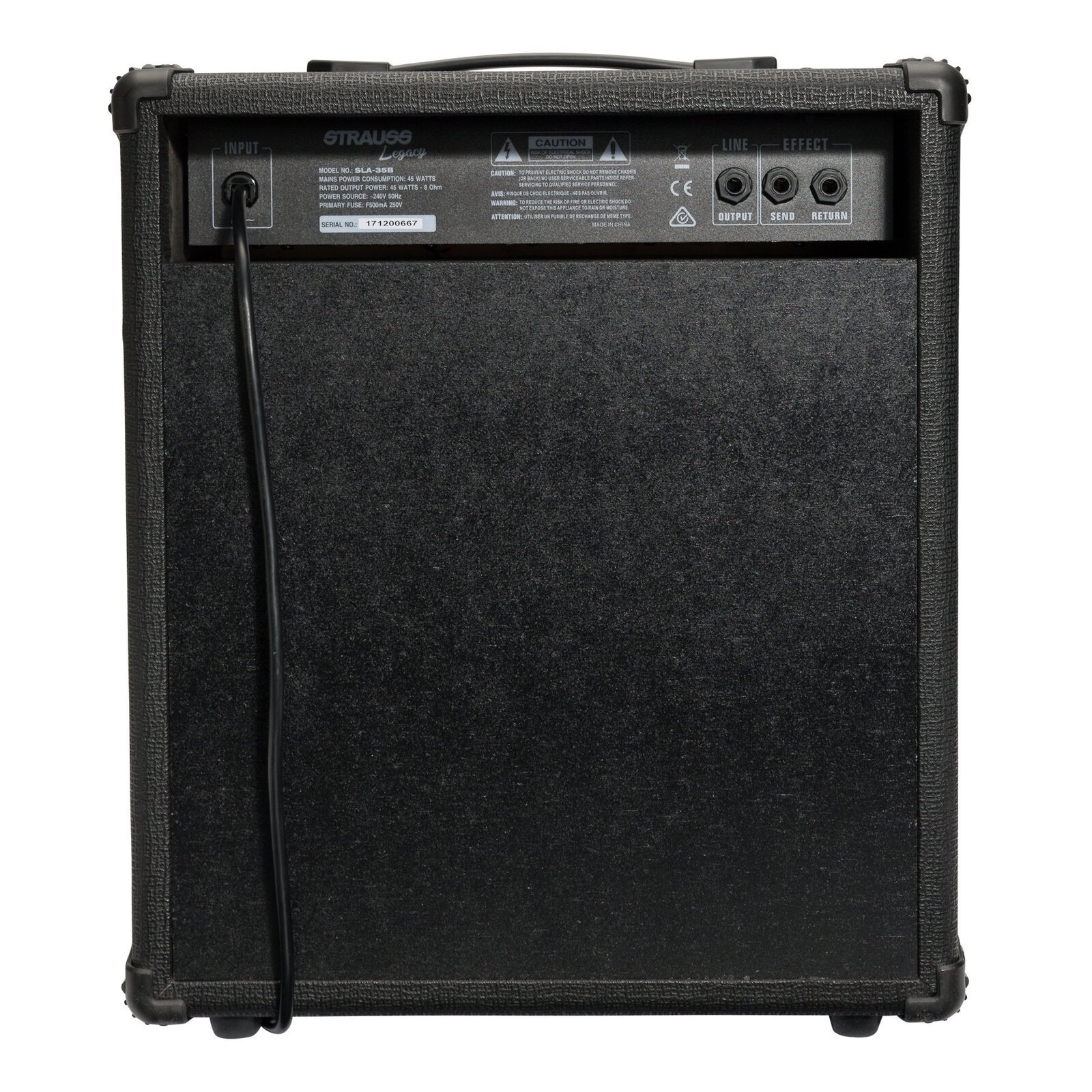 The SLA-35B produces 35 Watts RMS of solid state power and features marine ply cabinet with black vinyl covering, heavy duty carry handle, rubber corner protectors, master volume, Hi/Lo inputs, 3-band EQ with presence control and headphone out; ensuring the SLA-35B sounds as good as it looks.