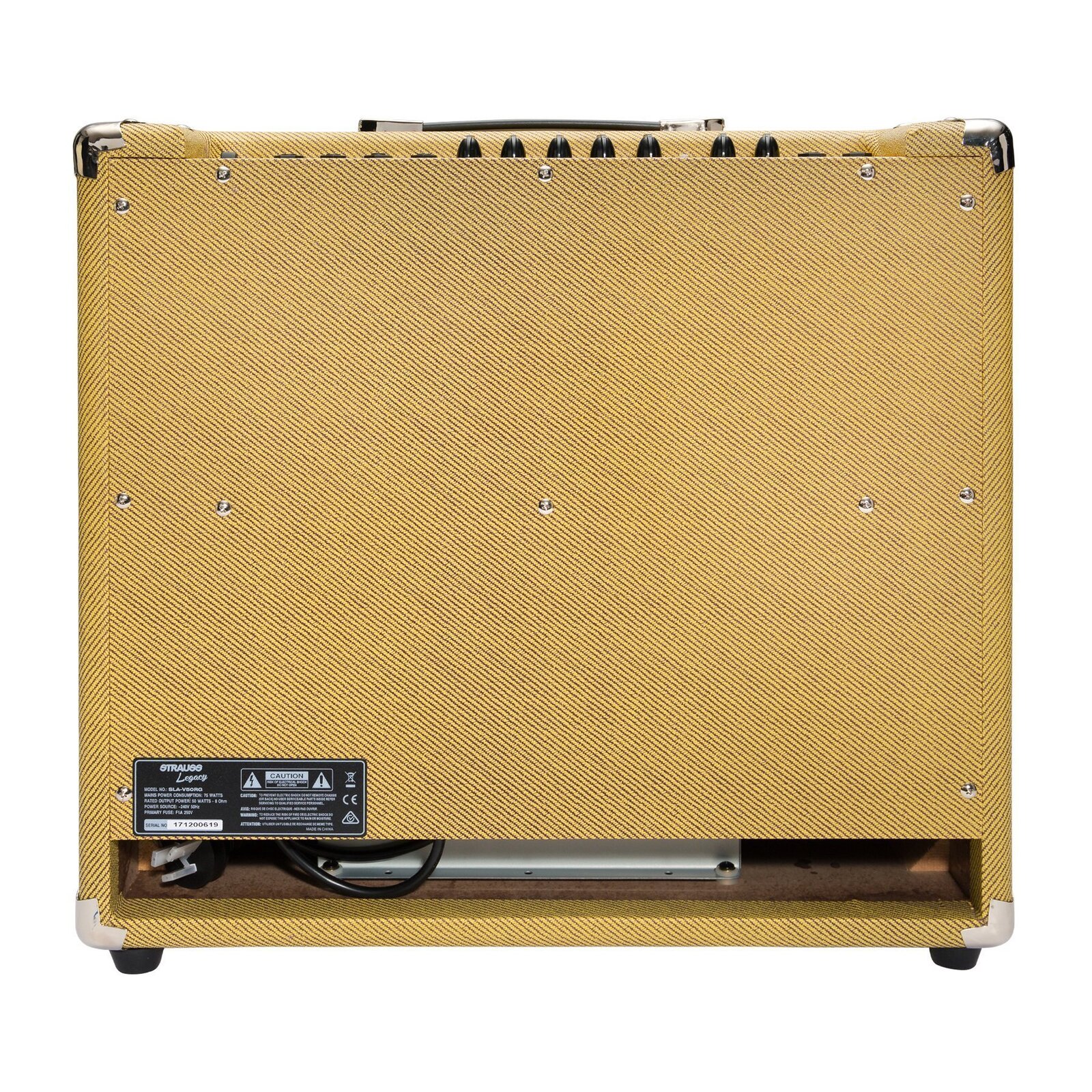 The SLA-V50RG produces 50 Watts RMS of solid state power and features marine ply cabinet with tweed style covering, heavy duty carry handle, chrome corner protectors, clean and overdrive channels with independent volume controls, channel selector switch/footswitchable, 3-band EQ, effects loop, spring reverb and headphone out; ensuring the SLA-V50RG sounds as good as it looks.