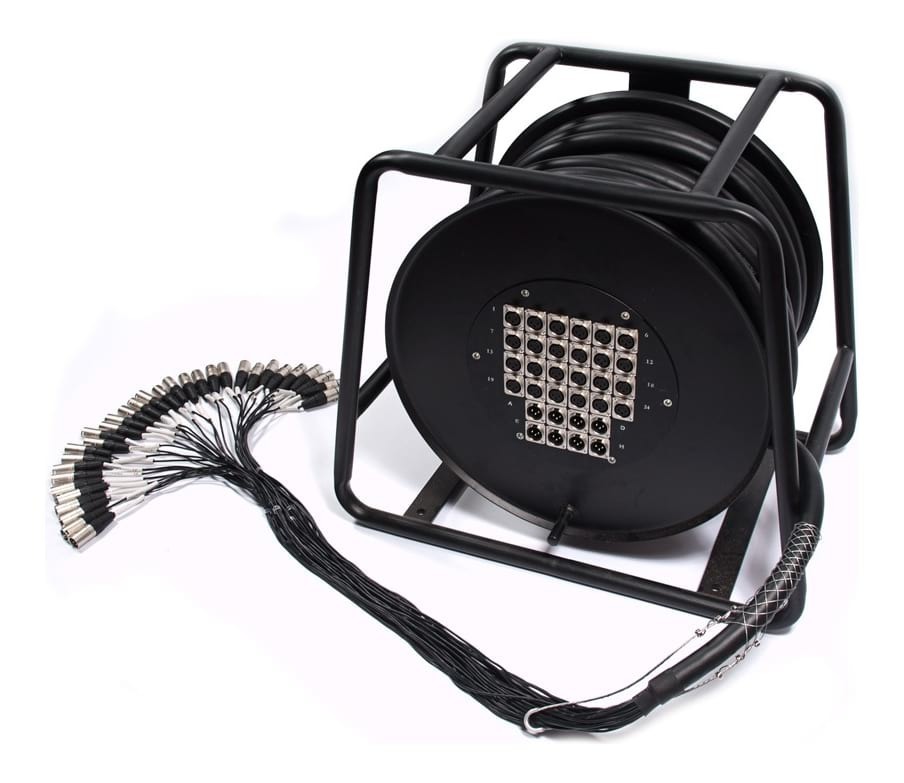 This multicore is perfoect for the the mobile band or when you have remote concerts and need to pack up all your gear. This is a Large Stage Audio Multicore The reel mounted stage box is prefect for large venues and outdoor festivals and gigs. A massive 24 XLR balanced send and 8 return channels to suit large PA systems.