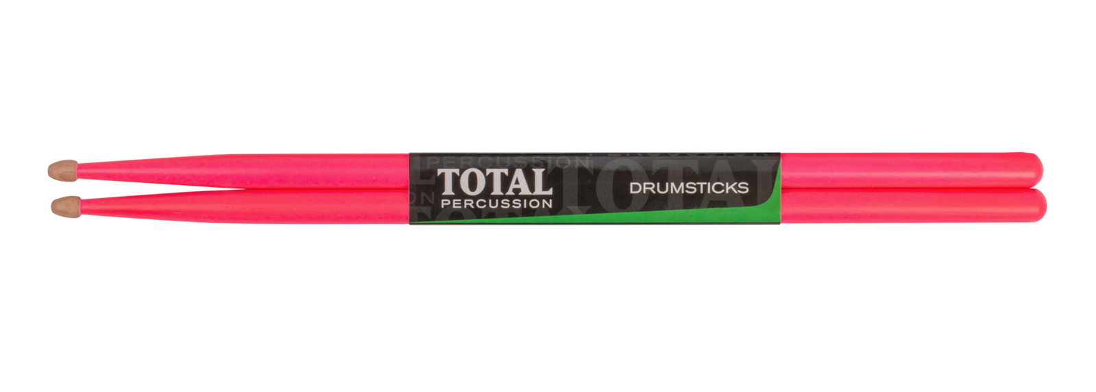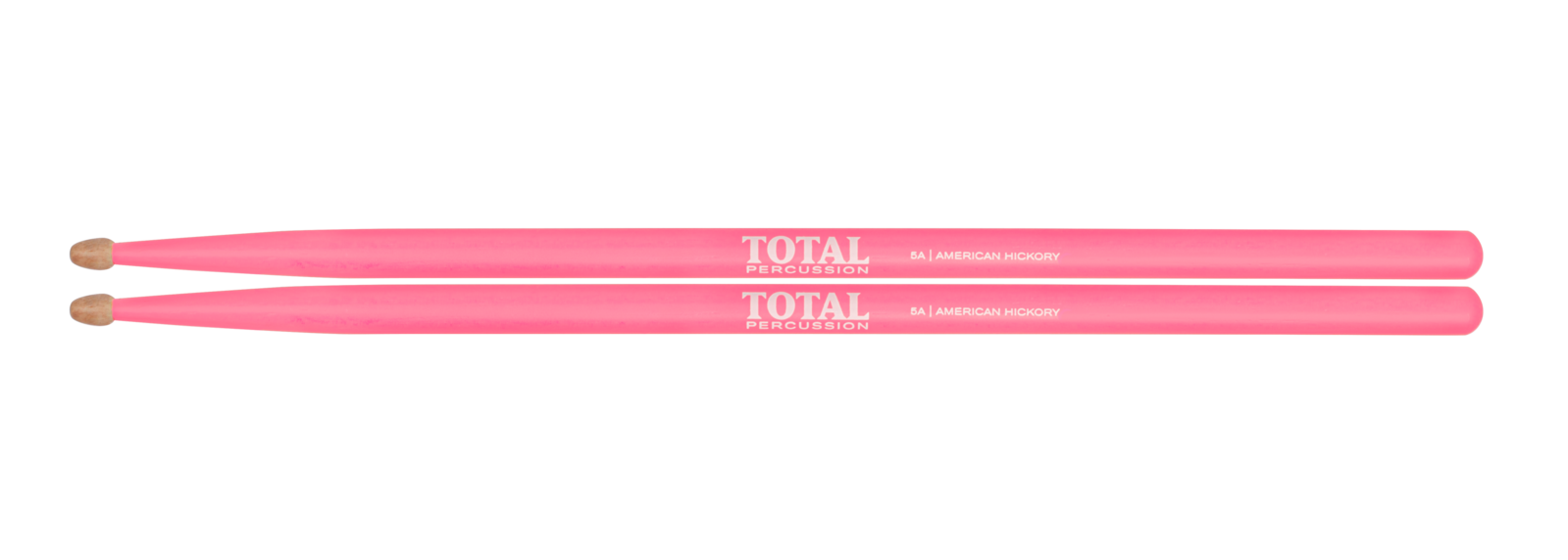 Total Percussion 5A American Hickory Wood Tip Pair of Drum Sticks in fluro pink. Features. Fluoro Pink Finish; American Hickory