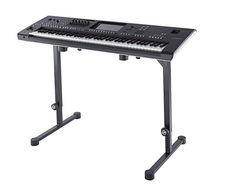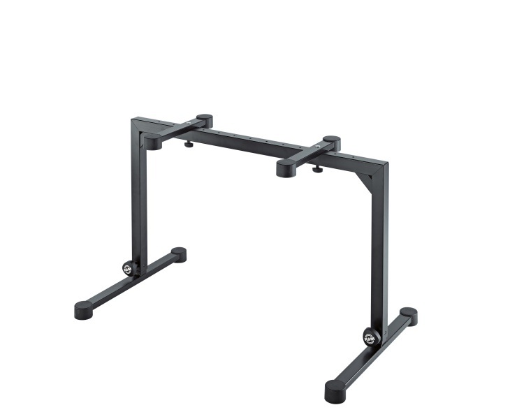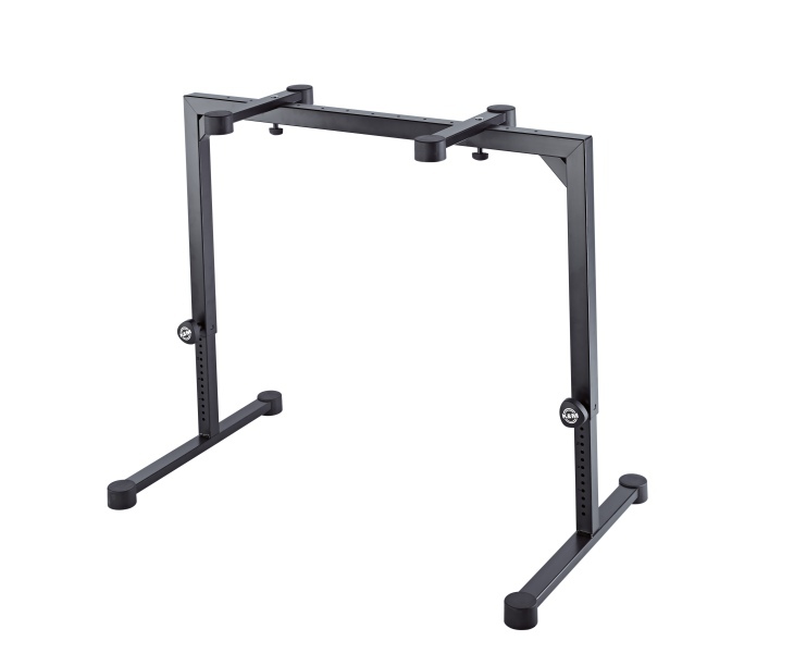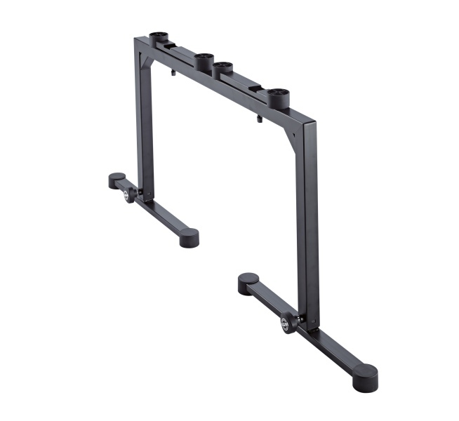 Its compact steel tubing construction and large round floor protectors make this attractive keyboard stand significantly more stable. Two-sided spring-loaded locking screws make precision height adjustment easy. The support arms can be adjusted to suit the size of the keyboard. When folded, the table is impressively flat. The design of this table matches the keyboard benches 14080, 14081, 14085 and 14086.An optional extra are the stackers 18811 for a second level and 18822 for a third level, allowing the use of a second or third keyboard/laptop. Use the adapter 18814 to mount the universal holder 18817 easily and quickly.