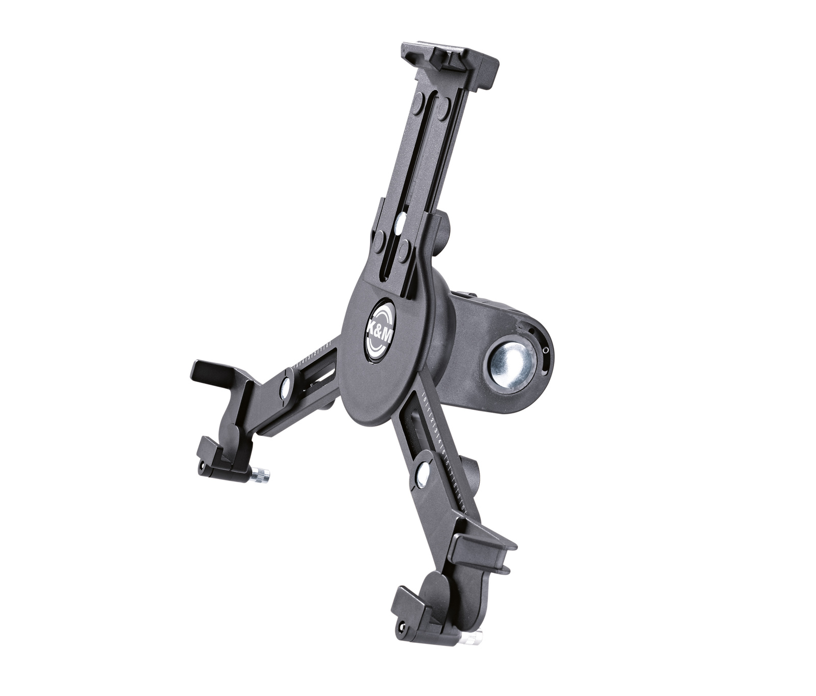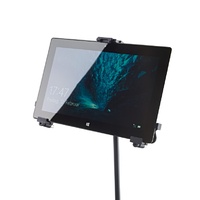 Give your Tablet devices a safe and secure hold: The Universal Tablet Holder can be adjusted variably to accommodate different tablet sizes without needing tools and holds the devices securely and effectively for many different situations. Be it on stage, in rehearsal rooms or at home - thanks to the 5/8" female thread the holder can be attached to for example any microphone stand quickly and simply. The individually adjustable support arms can accommodate the use of tablets ranging in height from 222 to 334 mm and width from 128 to 232 mm (for example iPad, iPad Air, iPad Pro, Amazon Fire HDX 8.9, Samsung Galaxy Tab from 9.7, Google Nexus 9, Asus Transformer or Microsoft Surface as well as Surface Pro). The depth of the tablets can vary between 6 and 11 mm. For the first use of the tablet holder the support arms settings are made by adjusting the clamp screws to the size and depth of the tablet. For other uses the tablet can be attached and detached quickly and simply through a snap lock. This provides maximum flexibility and mobility. A handy wing nut allows one to adjust the angle, so that each user will easily be able to find their ideal individual position. The tablet can switch between portrait and landscape positions. The tablet is kept in place, there is no danger of the tablet switching position by itself.