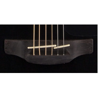 Other great features include a pinless rosewood bridge, synthetic bone nut and split bridge saddle, rosewood headcap, pearloid rosette and dot inlays, chrome diecast tuners and a beautiful gloss finish. Available in Natural and Black.