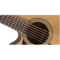 Great warmth, balance and harmonic richness resound from its X-braced solid cedar top and sapele back and sides. Other premium features include a mahogany neck and rosewood fingerboard with pearl dot inlays. The unique Takamine split bone saddle bridge provides faultless intonation and excellent acoustic coupling to the top.