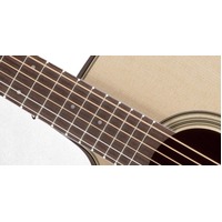 Great projection, balance and harmonic richness resound from its X-braced solid spruce top and sapele back and sides. Other premium features include a mahogany neck and rosewood fingerboard with pearl dot inlays. The unique Takamine split-saddle bone bridge provides faultless intonation and excellent acoustic coupling to the top.