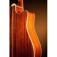 Takamine's P4DCLH cutaway combines tradition with contemporary refinements, including a resonant solid spruce top with scalloped "X" top bracing for superior clarity and projection, and a solid sapele back with sapele sides for rich, warm sound.