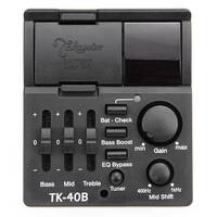Ready for any performance situation, the TGB30CE features a solid spruce top and mahogany back and sides that produce a rich, resonant sound. The slim mahogany neck and 16"radius rosewood fingerboard provide great feel and playability, while the onboard Takamine TK40B preamp system gives you a built-in tuner, three band EQ and gain controls, mid shift control, bass boost switch and EQ bypass switch for the ultimate in versatility and sound quality.