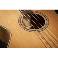 Featuring a solid spruce top and flame maple back and sides, the TGB72CE produces all the volume and robust sound that players expect from a jumbo bass guitar.