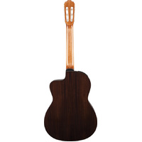 Ready for the demands of any performance situation, the TGC5CE features a fan braced solid spruce top and rosewood back and sides that produce warm, rich nylon string sound. The slim mahogany neck and rosewood fingerboard provide great feel and playability, while the onboard Takamine TP4T preamp system gives you a built-in tuner with three band EQ and gain controls for rock solid amplified performance and versatility.
