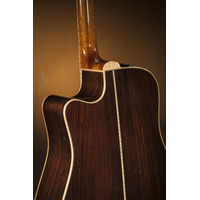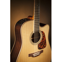 Takamine's powerful P7DC combines tradition with contemporary refinements; a solid spruce top with scalloped "X" top bracing and solid rosewood back and sides for rich clarity and projection, a convenient Venetian cutaway for easy access to the upper reaches of the fingerboard, and elegant maple body binding with dark wood purfling and abalone rosette.