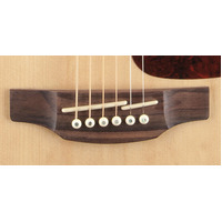 Other great features include maple body, neck and headstock binding, synthetic bone nut and split bridge saddle, rosewood headcap, abalone rosette, maple dot inlays, gold diecast tuners with amber buttons and a beautiful gloss finish. Available in Natural and Sunburst.