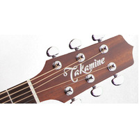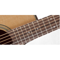 Great warmth, balance and harmonic richness resound from its X-braced solid cedar top and sapele back and sides. Other premium features include a mahogany neck and rosewood fingerboard with pearl dot inlays. The unique Takamine split bone saddle bridge provides faultless intonation and excellent acoustic coupling to the top.