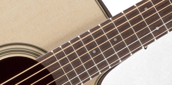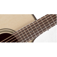 Great projection, balance and harmonic richness resound from its X-braced solid spruce top and sapele back and sides. Other premium features include a mahogany neck and rosewood fingerboard with pearl dot inlays. The unique Takamine split-saddle bone bridge provides faultless intonation and excellent acoustic coupling to the top.