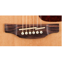 Other great features include a synthetic bone nut and split bridge saddle, rosewood headcap, abalone rosette, abalone "Reversed Mountain" inlay at the 12th fret, gold diecast tuners with pearl buttons, and a beautiful gloss finish. Available in Natural and Sunburst.
