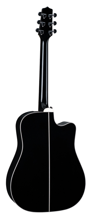 The versatility of this guitar begins with its solid cedar top that can play sweet, mellow passages or power chords with equal ability. The maple back and sides are a perfect reflector for the tone generated by the soundboard and the gloss black finish looks great under the stage lights.