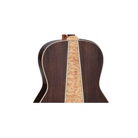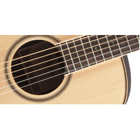 For players seeking the focused, articulate sound that this increasingly popular body style offers, the GY93E features a solid spruce top, rosewood sides and a stunning three piece rosewood & quilted maple back. The slim mahogany neck and 12" radius bound rosewood fingerboard provide great feel and playability, while the onboard Takamine TK40D preamp system gives you a built in tuner, three band EQ and gain controls, mid contour switch, notch filter and EQ bypass switch for the ultimate in versatility and sound quality.