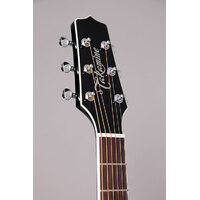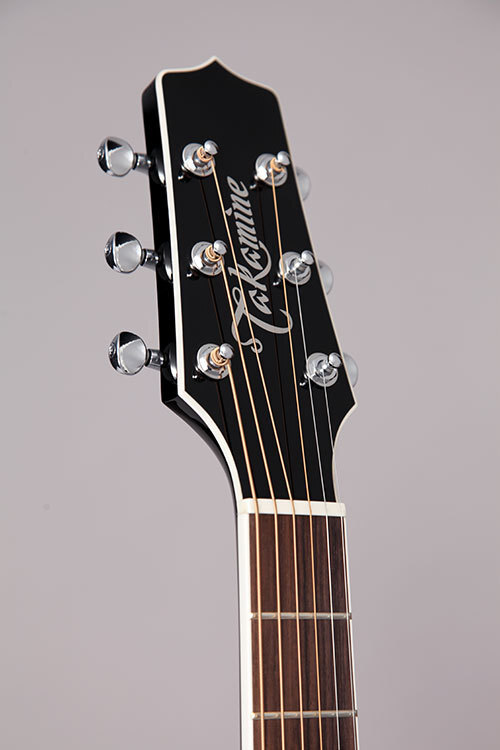 Essentially a retro take on Takamine's venerable P3NY, these guitars have fun finishes, non-slotted headstocks, intricate diamond inlays, and cool small button chrome tuners. They are great songwriting machines as the smaller size invites you to curl up on the couch with them.