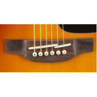 Other great features include a synthetic bone nut and bridge saddle, laurel headcap, abalone rosette and mother of pearl dot inlays, gold diecast tuners and a beautiful gloss sunburst finish.