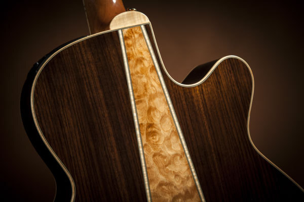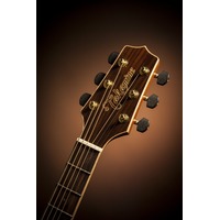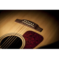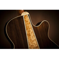 Other premium features include maple body, neck and headstock binding, dark wood rosette and body purfling, synthetic bone nut and split bridge saddle, rosewood headcap, abalone dot inlays, gold die cast tuners with black buttons and a beautiful gloss finish.