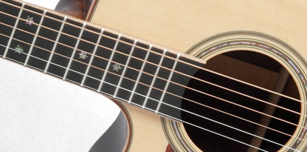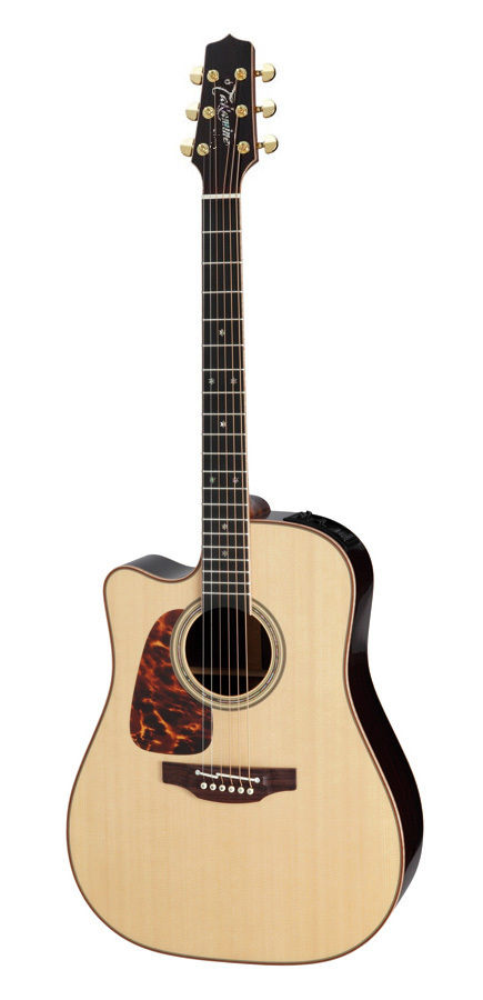 Premium design appointments include an ebony fingerboard with ivory binding, abalone "snowflake" inlays, a dark rosewood headcap with abalone Takamine logo, gold tuners with gold buttons, a natural bone nut and smooth gloss natural finish.