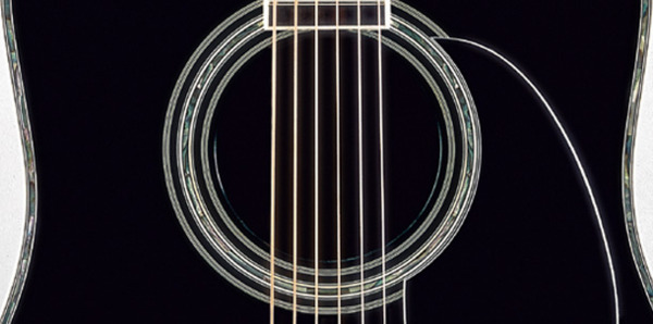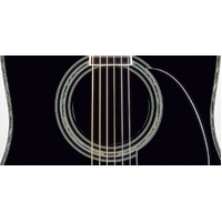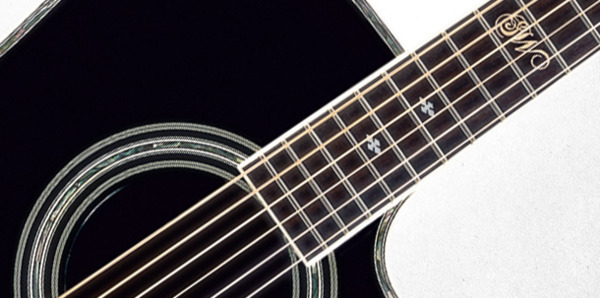 The shimmering tone is emphasized with the glimmer of hundreds of pieces of hand-inlaid abalone we set into Steve's favorite colour - black. Features an abalone rosette, purfling and fretboard inlays and a stylized SW inlay at the 12th fret designed by Steve.