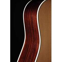 The pre-aged properties of the Takamine Solid ‘Thermal Top’ with Solid Indian Rosewood back and sides deliver an extra measure of low-end horsepower with this classic cutaway dreadnought. Grained ivoroid binding, diecast chrome tuners and understated 'T' logo appropriately accentuate the wide-open vintage tone of this killer instrument