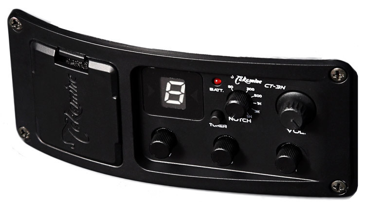 Its sleek neck is inlaid with beautiful abalone and shell on the ebony fingerboard. Stylish and powerful as well, its voice being easily transferred to the stage with Takamine's new CT-3N preamp. Comfort, quality, and performance in a great new format.