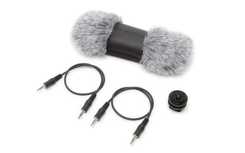 The AK-DR70D is an accessory kit for professional DSRL recordings, including a fuzzy windscreen, a shock-absorbing came show, and a pair of audio cables for connection between the DR-701D/70D and DSRL camera.