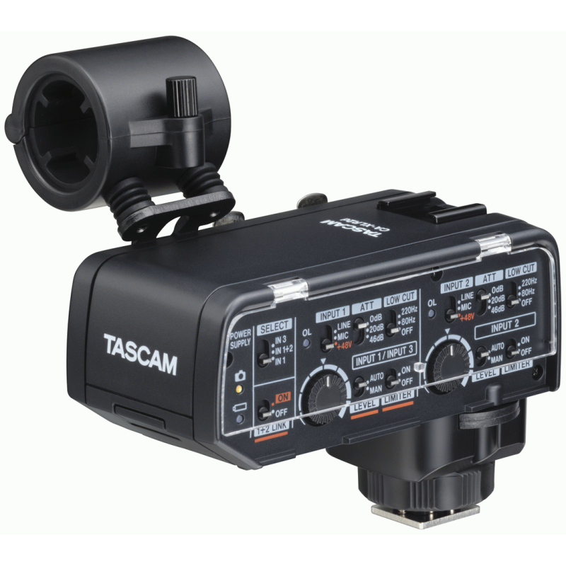 Tascam XLR MICROPHONE ADAPTER FUJIFILM KIT CA-XLR2d is a XLR microphone adapter for mirrorless cameras developed in collaboration with Canon, FUJIFILM , and Nikon.