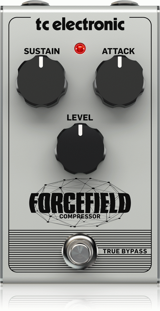 Vintage analogue compression differs greatly from modern studio compression. You won't get the glassy transparency of rack gear, instead you get gobs of warmth and a smooth tonal characteristic that has helped shape the history of rock and country music. Forcefield Compressor easily squeezes into every setup due to its compact, yet extremely durable design with top-mounted ins and outs, so it doesn't take up any space on your board where it matters the most. On top of that it features True Bypass so it doesn't affect your tone in any way when off.