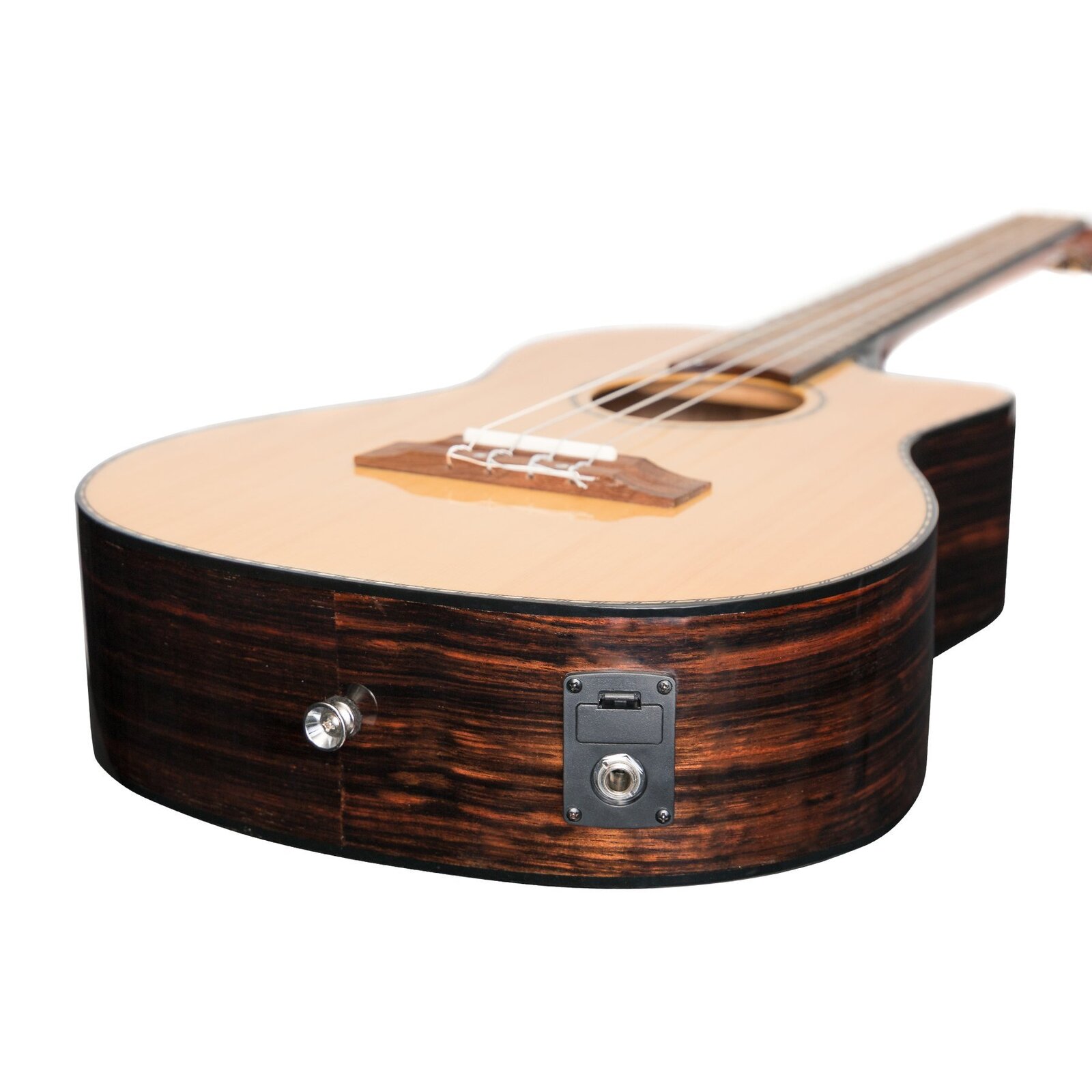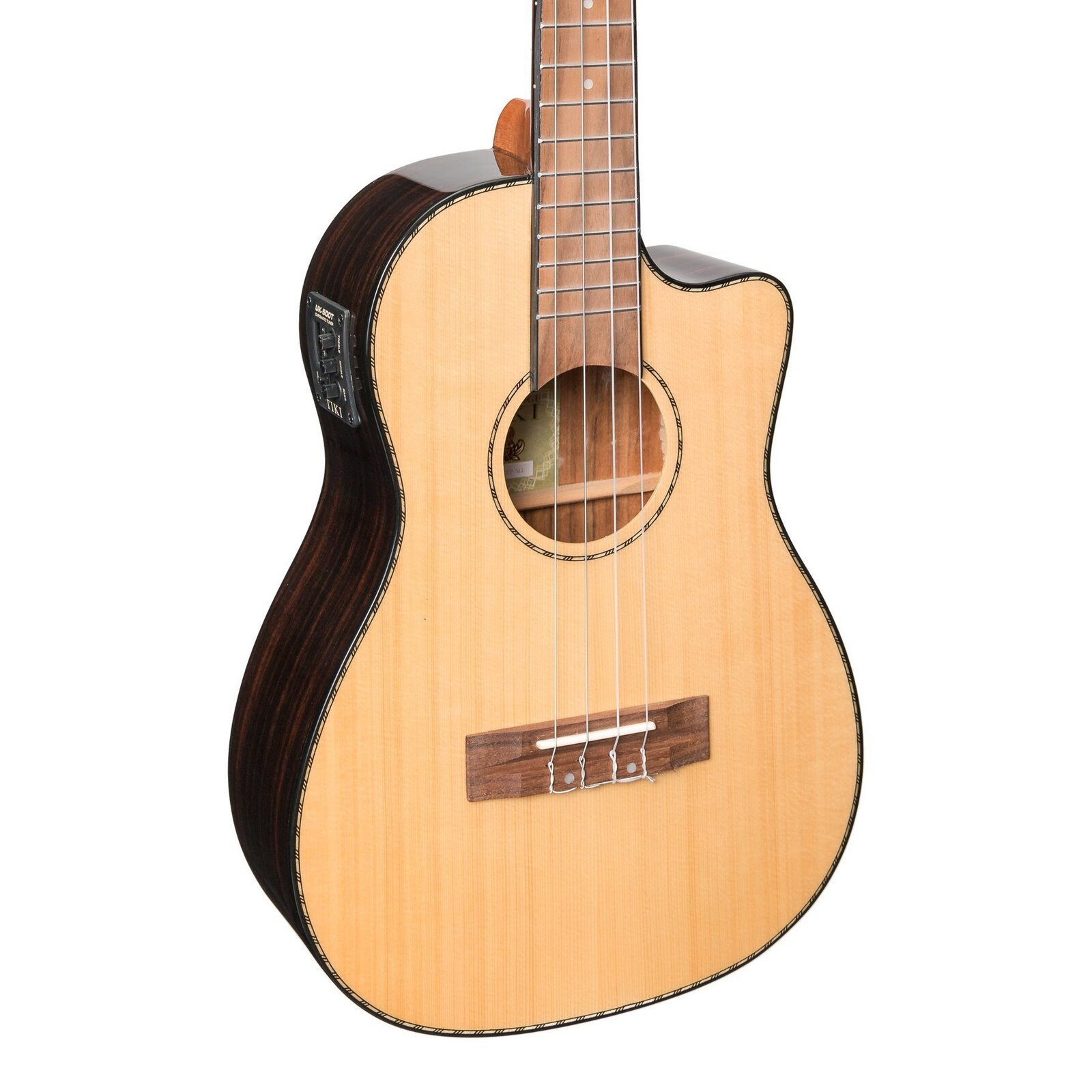 Tiki '22 Series' Spruce Solid Top Electric Cutaway Baritone Ukulele with Hard Case (Natural Gloss)