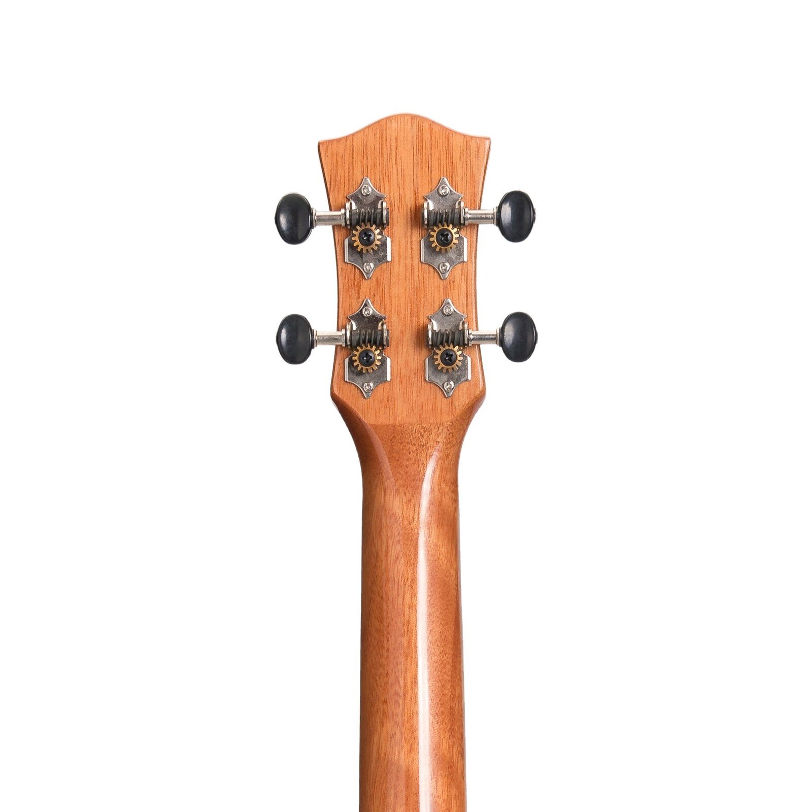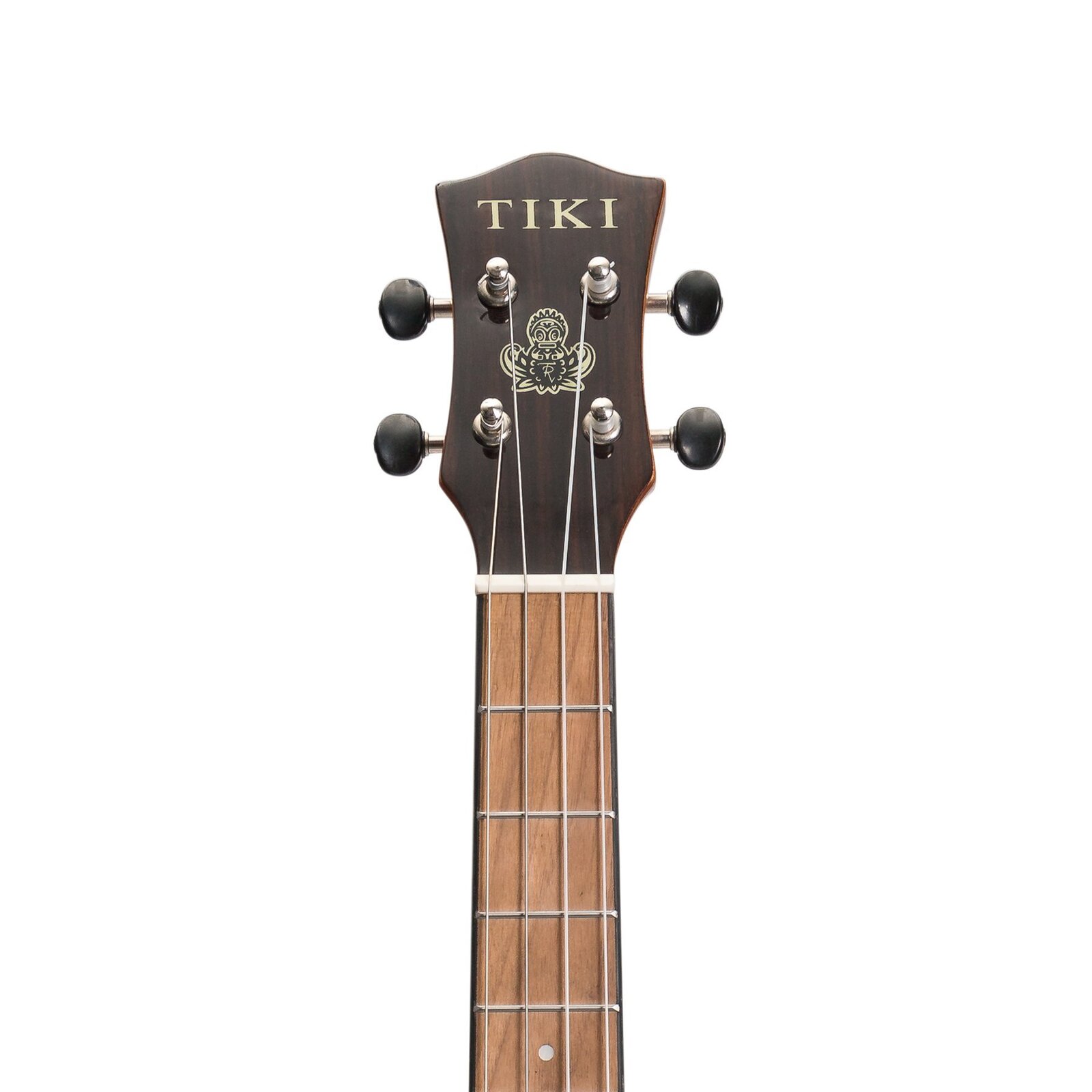 Featuring solid Englemann spruce top, ebony back & sides, mahogany neck, rosewood fingerboard and bridge, and chrome open back tuners with black buttons, the Tiki 22 series are exquisite ukuleles from any angle.