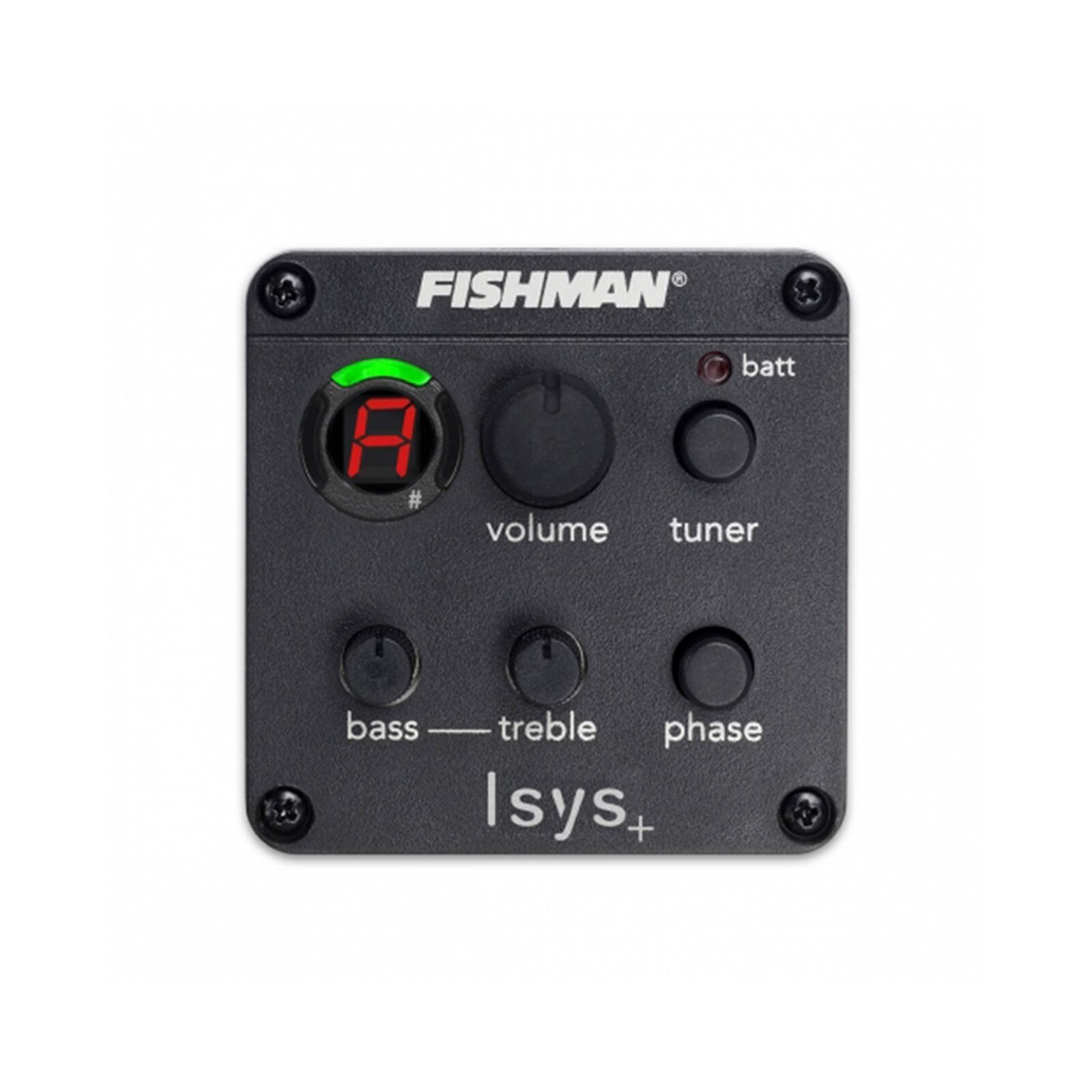 - The Fishman ISYS+ preamp system features volume, tone shaping and phase controls; a Fishman Sonicore pickup; LED tuner display and low profile control knobs. Powered by 9 volt battery (supplied).