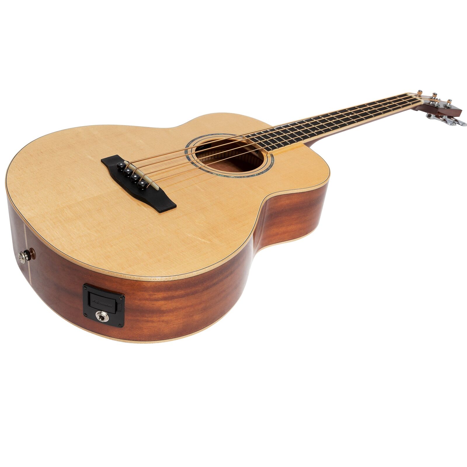 Timberidge '1 Series' Spruce Solid Top Acoustic-Electric Bass Travel Guitar with Gig Bag (Natural Gloss)