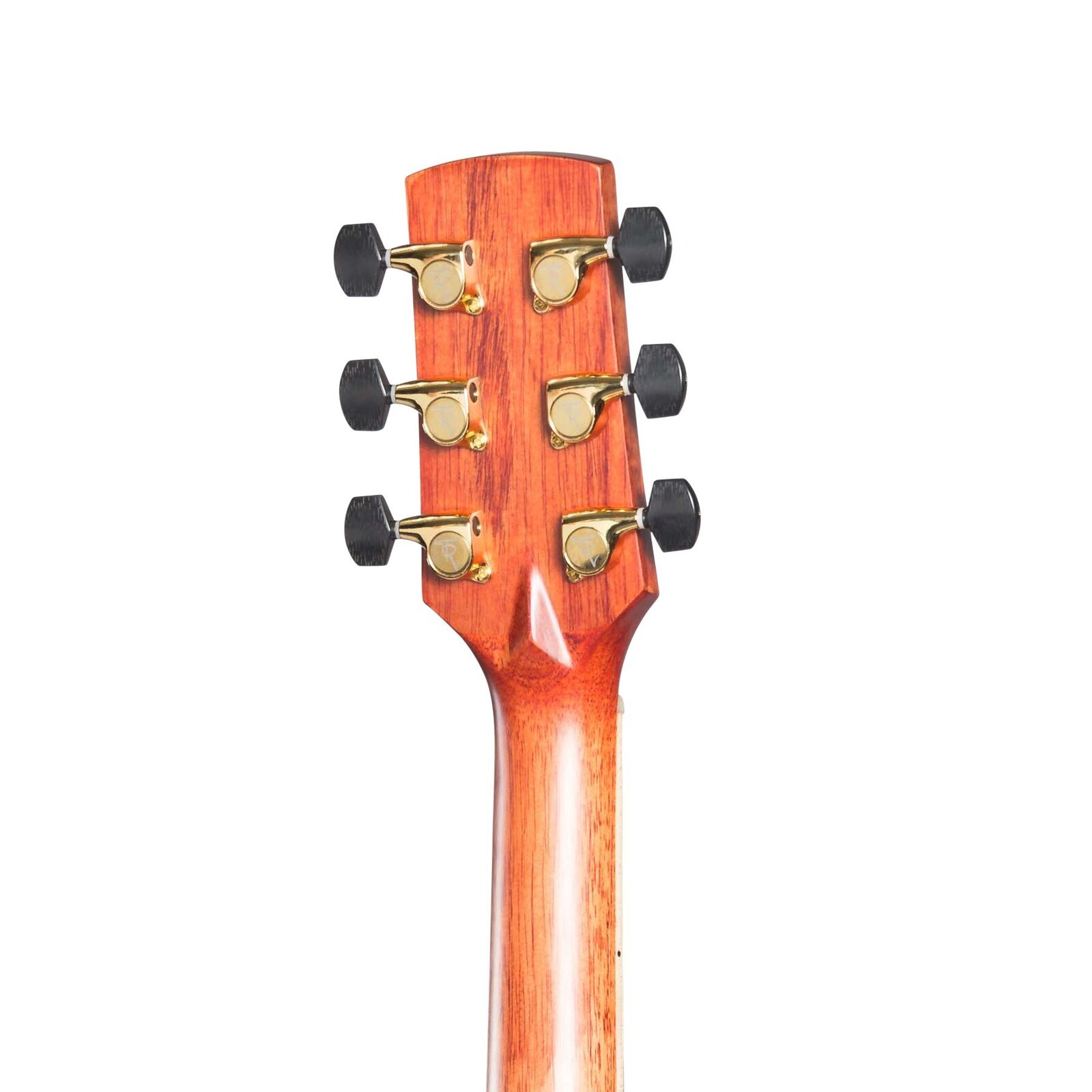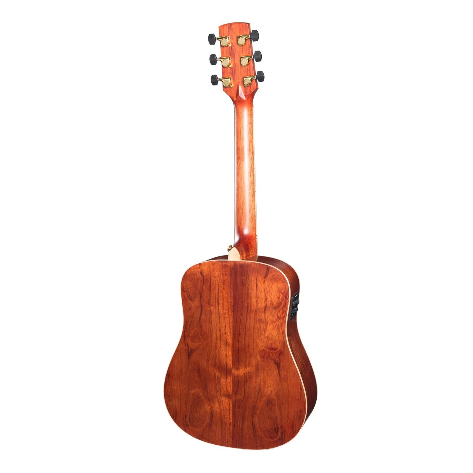 With the Timberidge Mini series, Timberidge took everything you love about a full sized dreadnought acoustic guitar and shrank it, creating the perfect travel companion. Don't let its size fool you, the Timberidge mini series has been crafted with the same care and attention to detail as any other Timberidge guitar, resulting in excellent projection and tone, easy playability and stunning good looks. Featuring a solid cedar top, exotic bubinga back and sides, Fishman ISYS+ preamp system paired with the Fishman Sonicore pickup, inbuilt tuner, bone nut and saddle and maple binding, the Timebridge 4 series mini is a serious guitar in a compact package.