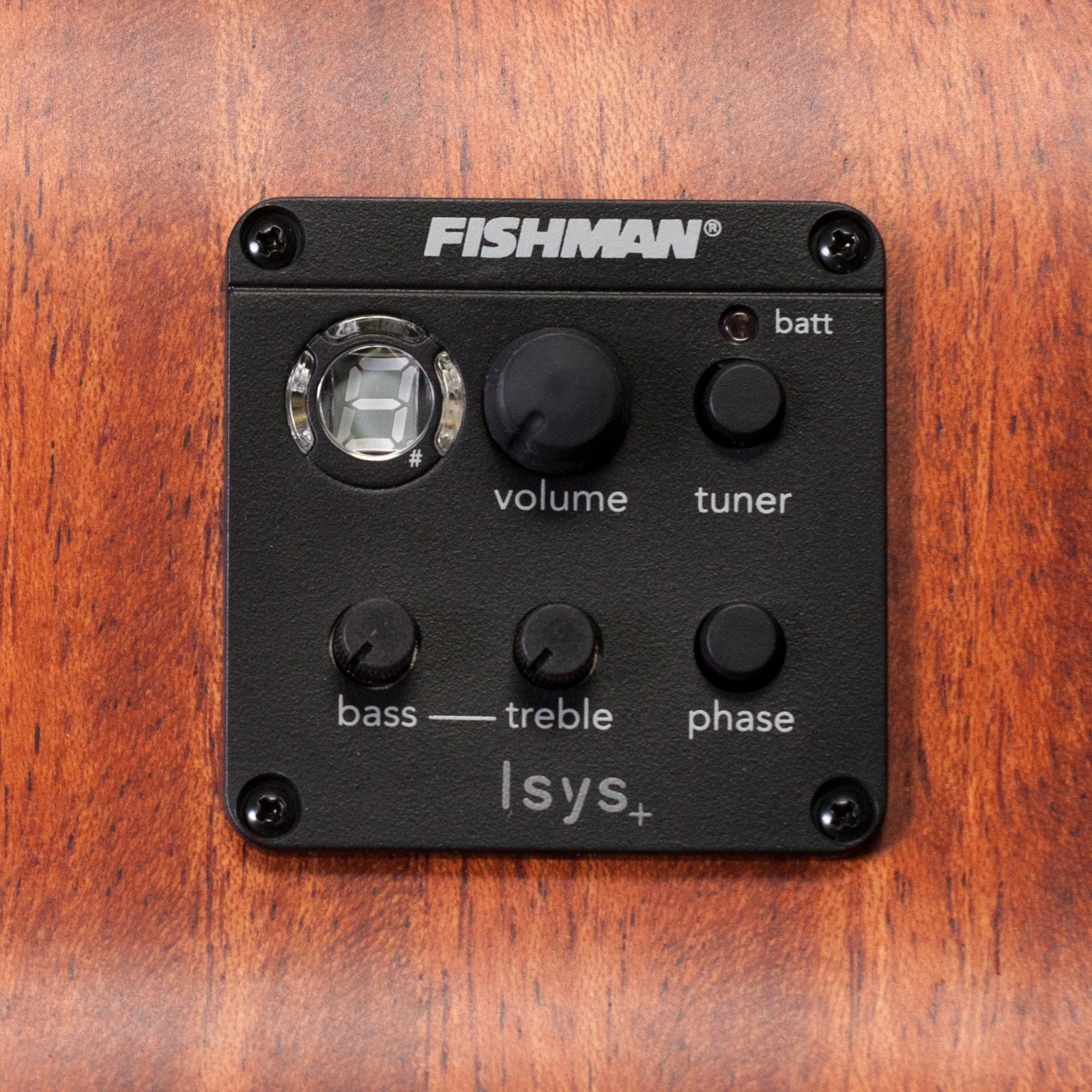 - The Fishman ISYS+ preamp system features volume, tone shaping and phase controls; a Fishman Sonicore pickup; LED tuner display and low profile control knobs. Powered by 9 volt battery (supplied).