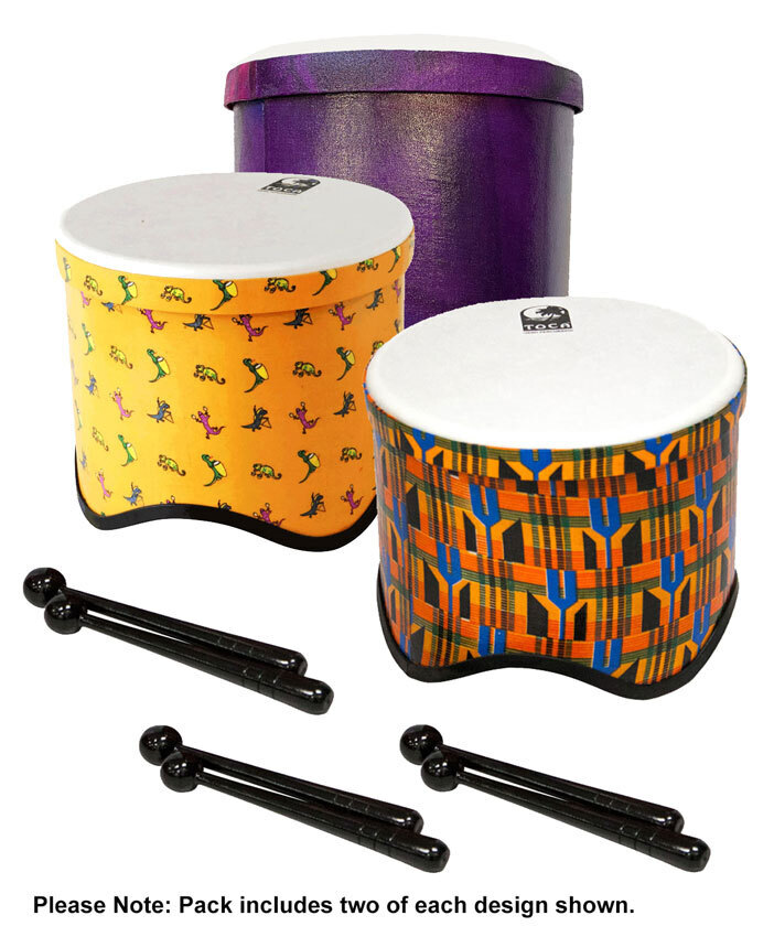 Toca Freestyle 2 Tom Tom Drums in Woodstock Purple, Kente & Lizard Design (6-Pk)