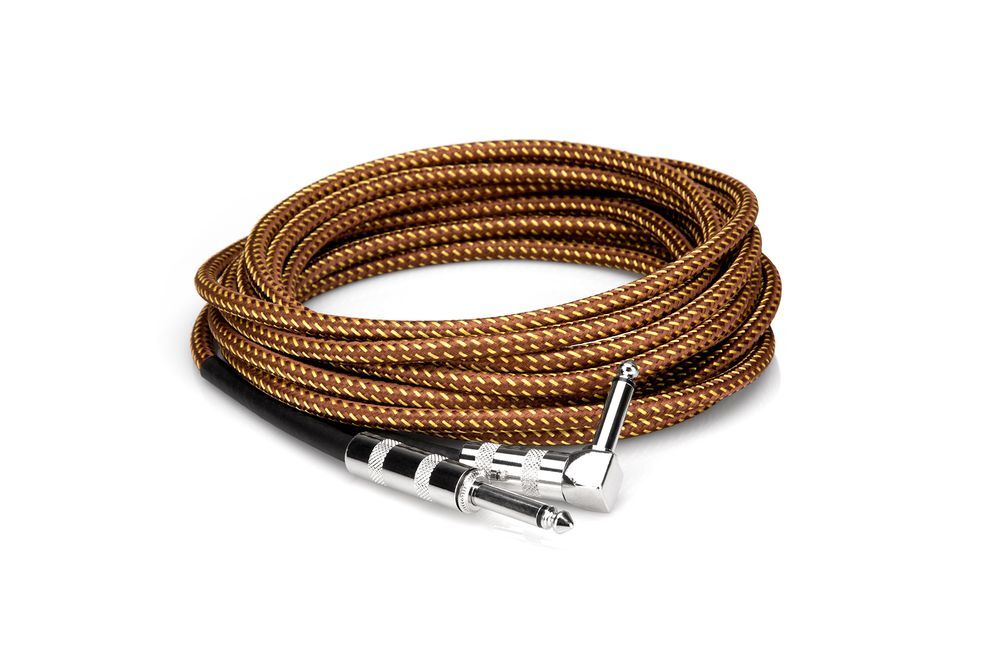 Tweed Guitar Cable, Hosa Straight to Right-angle, 18 ft | Designed to provide years of dependable service | High-quality components and world-class manufacturing combine to deliver products of exceptional value | Serviceable, all-metal plugs for touring and other applications | Oxygen-Free Copper (OFC) conductor for enhanced signal clarity | Hi-density OFC braided shield for superior EMI and RFI rejection | Lifetime warranty
