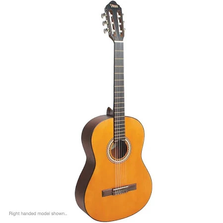 Manufactured to Valencia's exacting standards, in their factory in Indonesia, the Series 200 starts with a sitka spruce top, nato body and jabon neck for balanced tone. A distinctive, see-through satin finish reveals the inherent beauty of the tonewoods. An ebonized mahogany fingerboard and mahogany bridge completes the elegant look. Part of the newly developed “Hybrid”, Thin-Neck model. This guitar features a 45mm neck width (at nut) with 650mm (25 5/8”) scale length on a standard size body, the Hybrid is especially designed to accommodate the smaller hands of some beginner players. For superior stability and strength the neck of this model features two central reinforcing strips of rosewood installed longitudinally along the entire neck length. Features Full size classical guitar Left handed model Sitka spruce top Nato back and sides Black ABS top and neck binding Jabon neck with ebonized mahogany fingerboard Mahogany bridge Traditional nickel machine heads with cream buttons Antique natural satin finish
