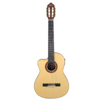 The Valencia VC404 Classical guitar has a mahogany neck, back, and sides with a Sitka Spruce top. Delivering the richness and depth that you would expect from a classical guitar.