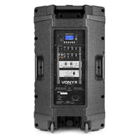 The Vonyx VSA1200-BP is a high-quality professional 12” portable audio system. This all-in-one portable audio system is simple to set-up and use – no technical background required. Furthermore, you can utilise its Bluetooth functionality, USB port, SD card slot, FM radio and AUX inputs. With an 800W max power output through high-performance class D amplification, this speaker will get the job done. The built-in amplifier unit is equipped with a BT receiver that allows streaming of all your favourite music from a smartphone or tablet and a USB port/SD slot for MP3 playback. In order to always be clear about what is currently being played, these audio systems have a clear graphic display for displaying ID3 tags. Thanks to the built-in rechargeable battery, these systems are perfect for applications such as PA and street performances. In fact, the VSA1200-BP can keep playing for up to 8 hours of continual use on a full battery charge. It is easy to monitor battery life as the unit comes with a battery status and charge indicator. The rear panel of these systems offers plenty of connectivity, versatility and functionality. It includes a microphone input channel with a 3-pin XLR combo input, an aux-line input, controls for tone adjustment, an Mp3 control unit and a battery indication section where you can easily check the status of the battery. It also offers both a Line In and Line out using an RCA jack. The VSA1200-BP also includes 1 x UHF handheld microphone and 1 x UHF wireless bodypack transmitter with headset & lapel microphone. Also, there is a dedicated section to control two channels of each wireless device independently. Additionally, they have separate volume control and switchable echo effect. The VSA1200-BP has everything inside its single, heavy-duty enclosure. Furthermore, it comes with roller wheels and a pull-up handle to assist with transport.