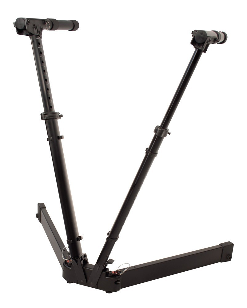 Sporting a unique look, the V-Stand Pro is as versatile as it is visually striking. You can use it in a standing or sitting position, its highly versatile (use it to hold DJ gear or mixers), and provides plenty of space at the base for all your keyboard pedals. The V-Stand Pro is also extraordinarily portable, folding up into a mere 28.5 x 9.5 x 6 space!