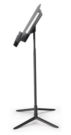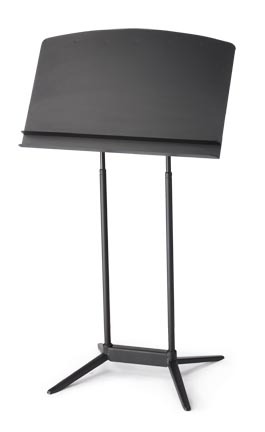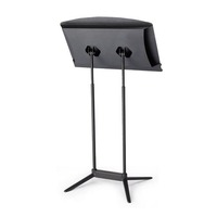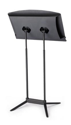 A generous-sized conductor's music stand with added storage.