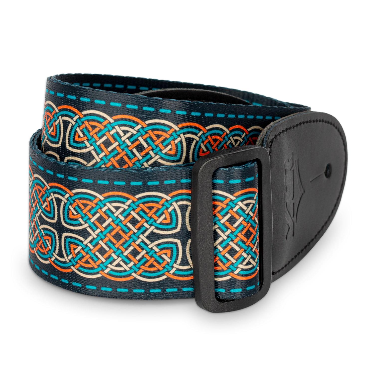 2-inch poly material with quality stitched leather ends. Slide adjustment. Bold, striking full-colour Celtic knot design.