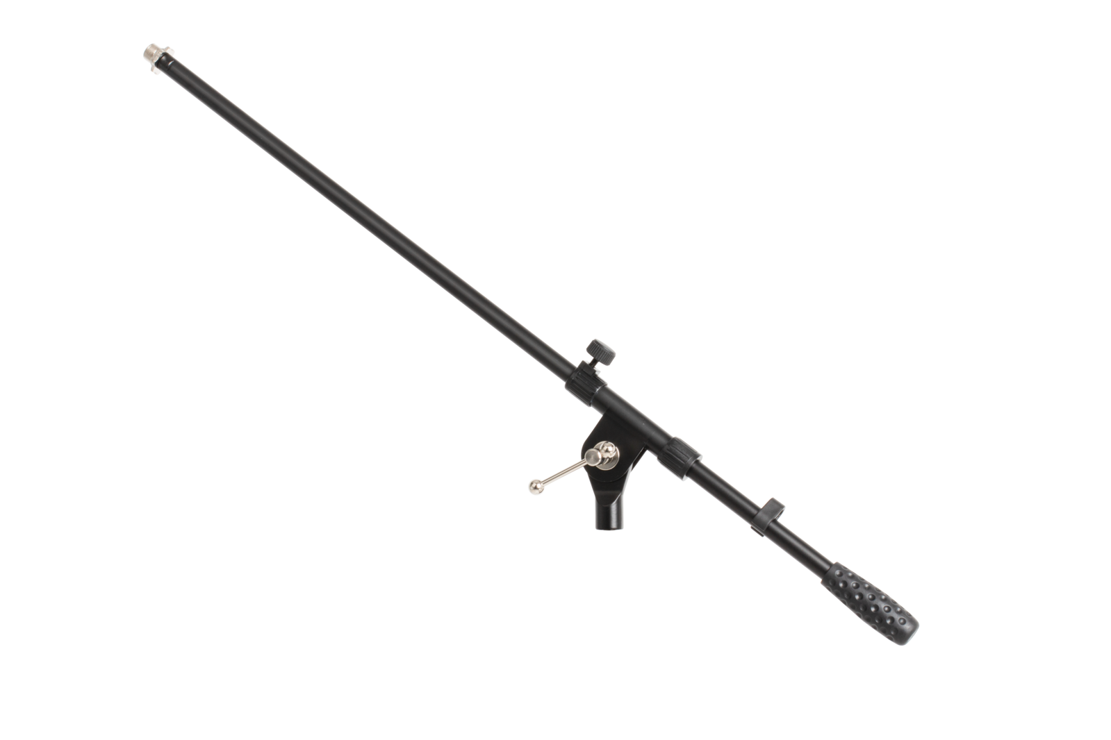 Boom arm boom stand for universal microphone. Will fit onto 80cm straight microphone stands. Black in colour.