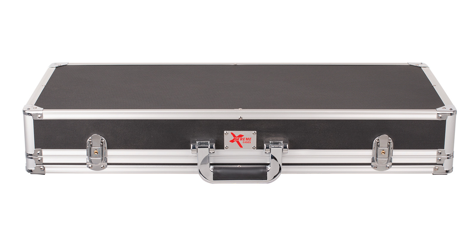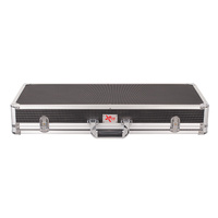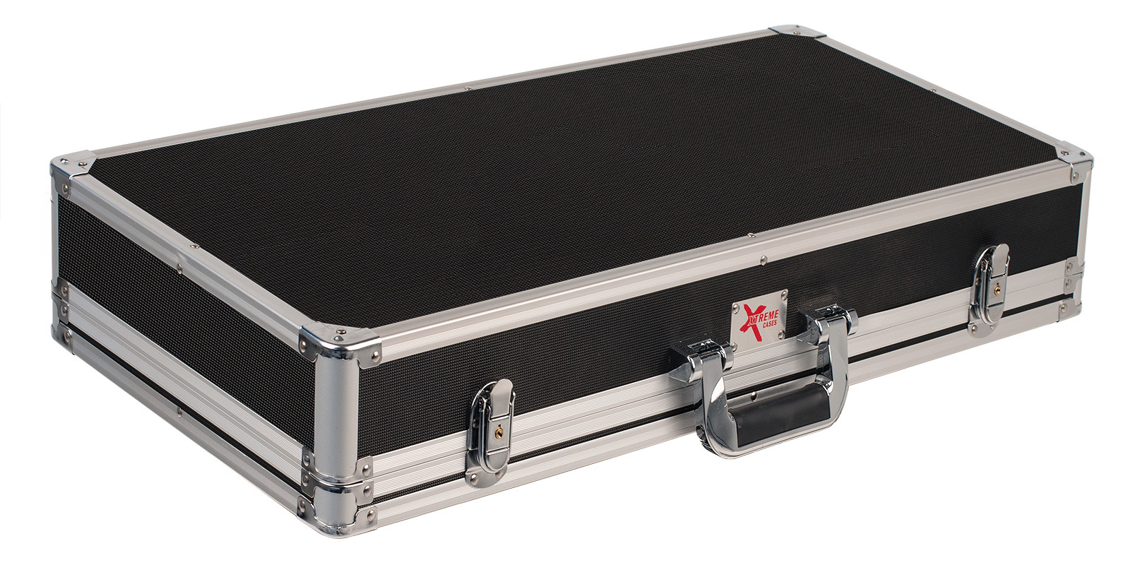 Black hard shell case with aluminium binding and metal corners. Deluxe handle. 2 chrome latches with locks. High density foam and 10mm sponge interior for added protection. Hook tape for attaching pedals. Xtreme logo plate.