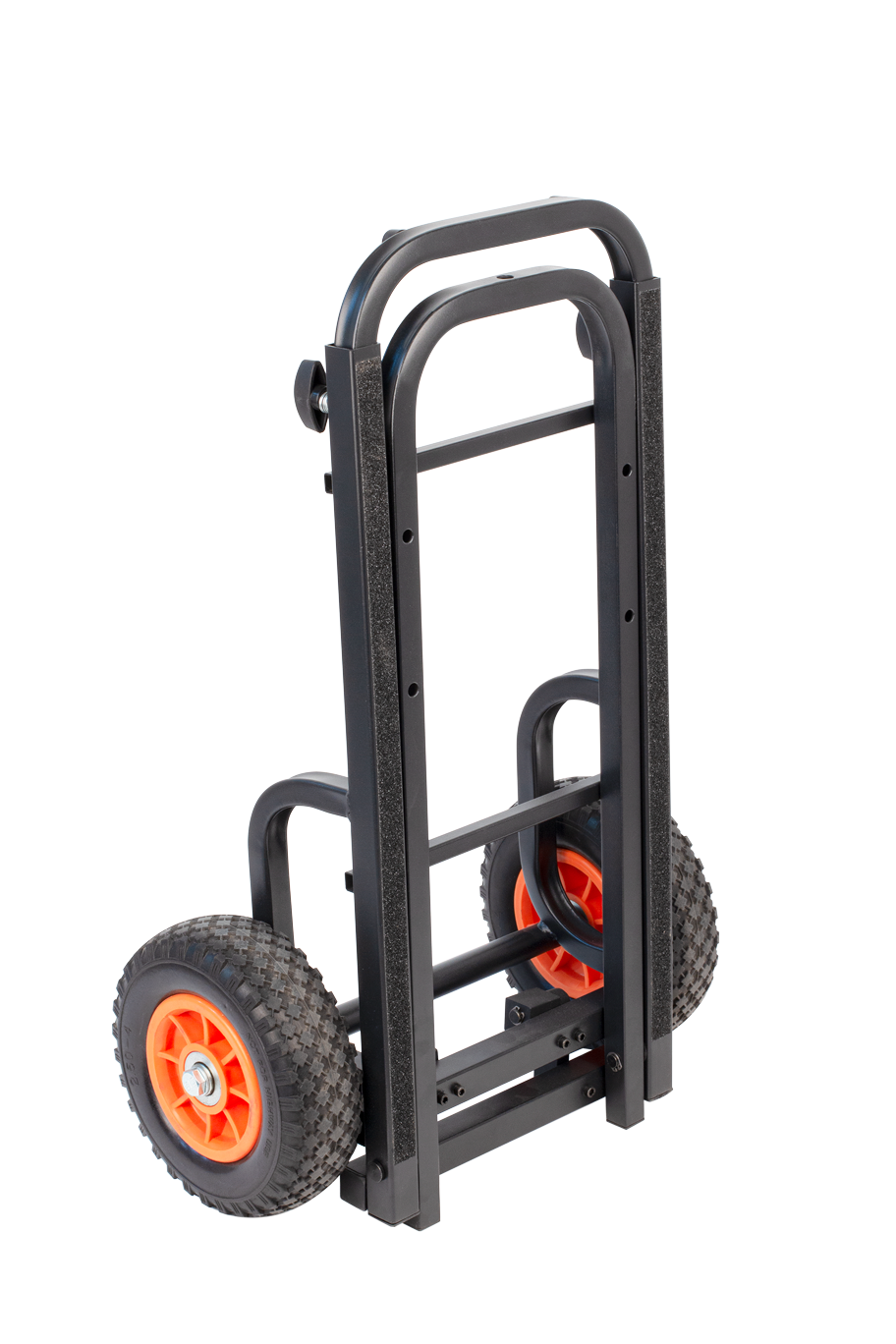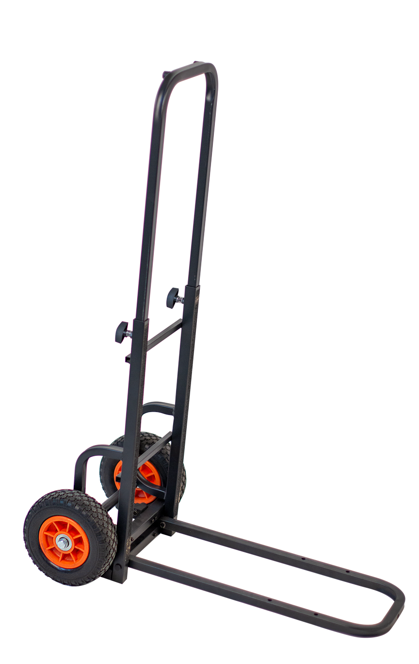 Robust trolley that eliminates the strain of hauling around your gear. a 21½" foldable nose and an upright adjustable handle rail to accommodate large equipment. Robust 8" x 2½" wheels with no flat spots. Non-slip surface for grip. Length: 10.5" 90 kg of load capacity. Completely put together.