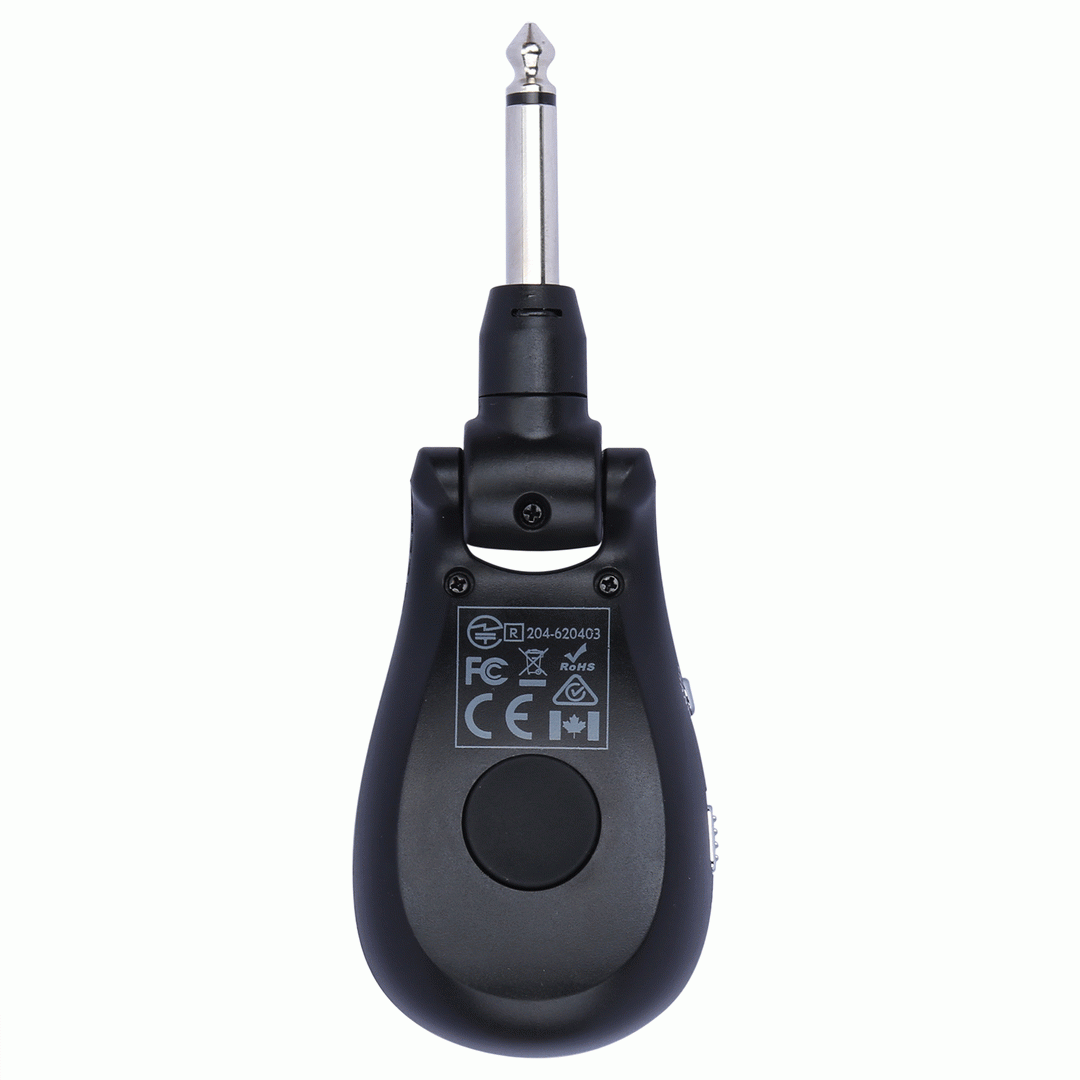 The Xvive U2 system offers four channel choices at 2.4 GHz, and up to 100ft line-of-sight range. You can use up to 4 sets of transmitters and receivers with multiple instruments in the same setting, or you can assign multiple receivers to the same channel and use a single transmitter. Up to 100ft/30 metre line-of-sight transmission range Frequency Response: 10Hz-20kHz -Delay time: <6ms Resolution: 24-bit Delta Sigma, 2.4GHz broadcast A/D conversion: 24-bit low-noise system Play Time: Approx. 5 hours Recharge Time: Approx. 2 hours Input/Output: Side-mounted 1/4-inch Jack connector Use with any Hi-Z 1/4-inch instrument output Colour: Carbon