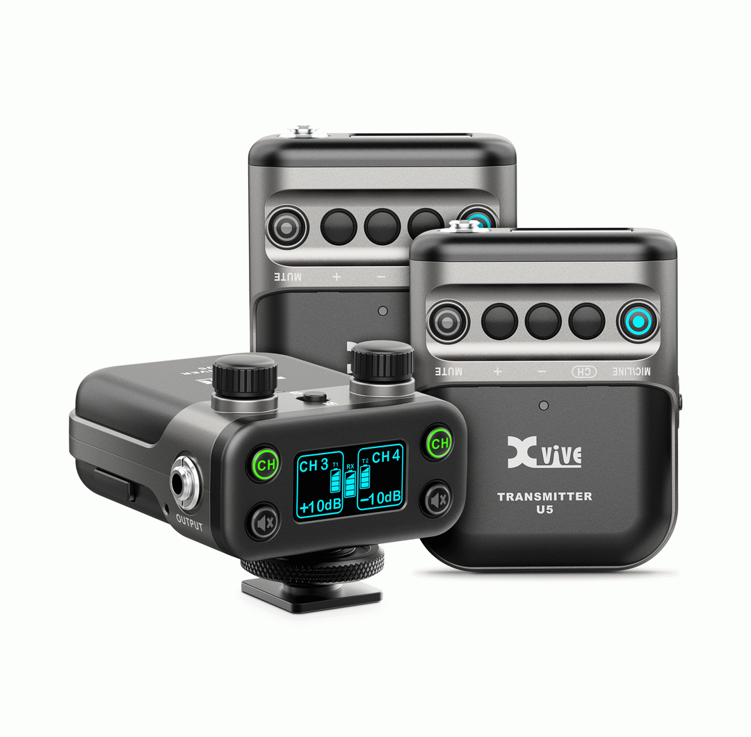 The Xvive U5T2 wireless lapel mic comes with 2 beltpack transmitters and 2 LV1 lavalier microphones. Dual-channel design allows you to send wireless signals from 2 lavalier microphones or other audio sources to a DSLR camera, video camera, recorder or other audio device. Great for video shoots, livestreams, interviews, weddings and more. 3.5mm TRS analog output can connect directly to a 3.5mm input, or to iOS lightning or USB Type-C (adapters/cables not included)